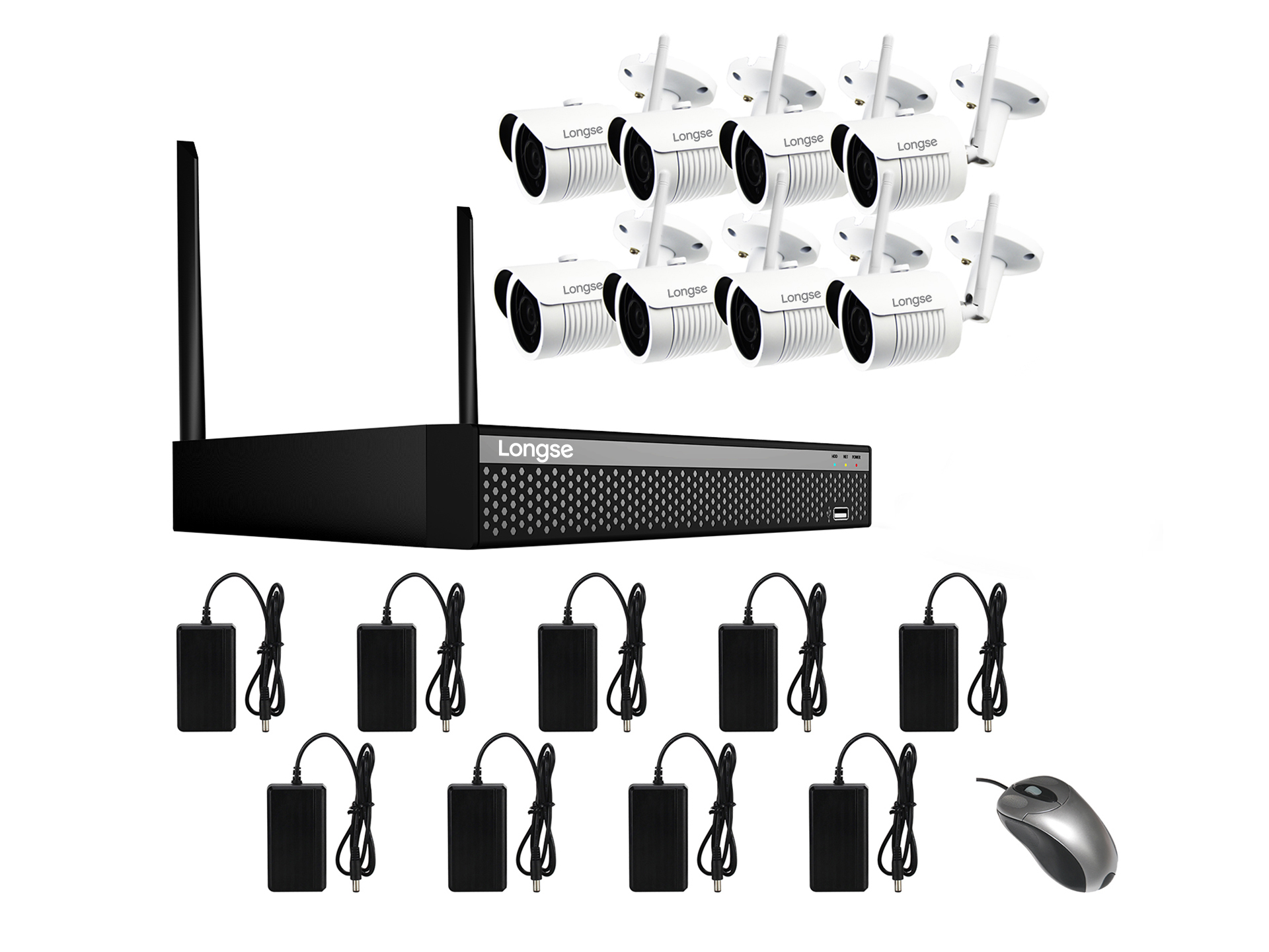 | 适配器 | 1xDC 12V 2A for WIFI NVR, 8xDC 12V 0.5A for WIFI IP Camera |