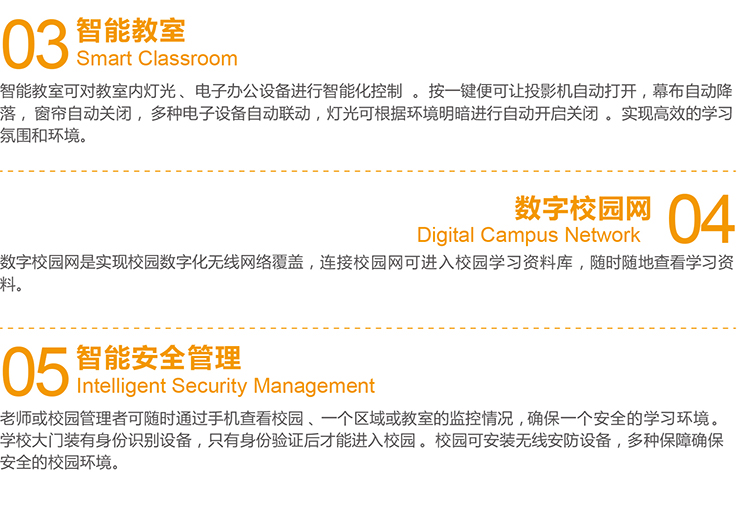 所谓“智能黉舍”指的因此物联网为根本连系黉舍现有装备,停止智能化节制的古代化校园。能够或许在进修效力和节能中供给最好𒉰的均衡,削减了人力需要,下降了运作本钱,进步了办理效力,将耗能降至最低,同时供给宁静、温馨的进修情况。