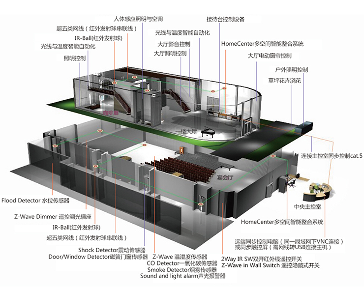🔯 智能旅店处置计划是操纵LivingCenter办理体系为传统旅店周全进级,为旅店带来更多的客源,为客户供给更温馨更便利简略的办事,对客房的门禁体系、中间空调体系、智能灯光体系、背景音乐体系、办事体系等停止智能化办理与节制,及时监测客房状况、来宾须要、办事状况和装备情况等,具备节能、增效、为仆人供给人道化办事、晋升旅店办理程度和旅店抽象等诸多上风。LivingCenter智能旅店办理体系接纳有线加无线的节制体例节制全部旅店,旅店的节制主机在中间节制室,在这里能够或许领会到全部旅店的信息,客房须要,装备状况,监控画面,照明,水电,情况监测等。本计划包罗两种体系,一种是全体节制体系-LivingCenter,一种是房间内零丁节制体系-RoomCenter。LivingCenter体系中间节制室主机地位处引出一条Cat.5收集线,根据后期图纸设想线路铺设到每个房间地区,由IR-BALL节制该地区的统统装备,空调、遮阳帘、音乐、电视机、ꦅ草坪花草等统统能够或许主动化完成的工作。在旅店的走廊和大众地区内统统的照明都是由IR-switch和z-wave模组节制的。中间空调和新风均是由温控面板完成智能节制,能够或许完成零丁节制某一个地区的情况。